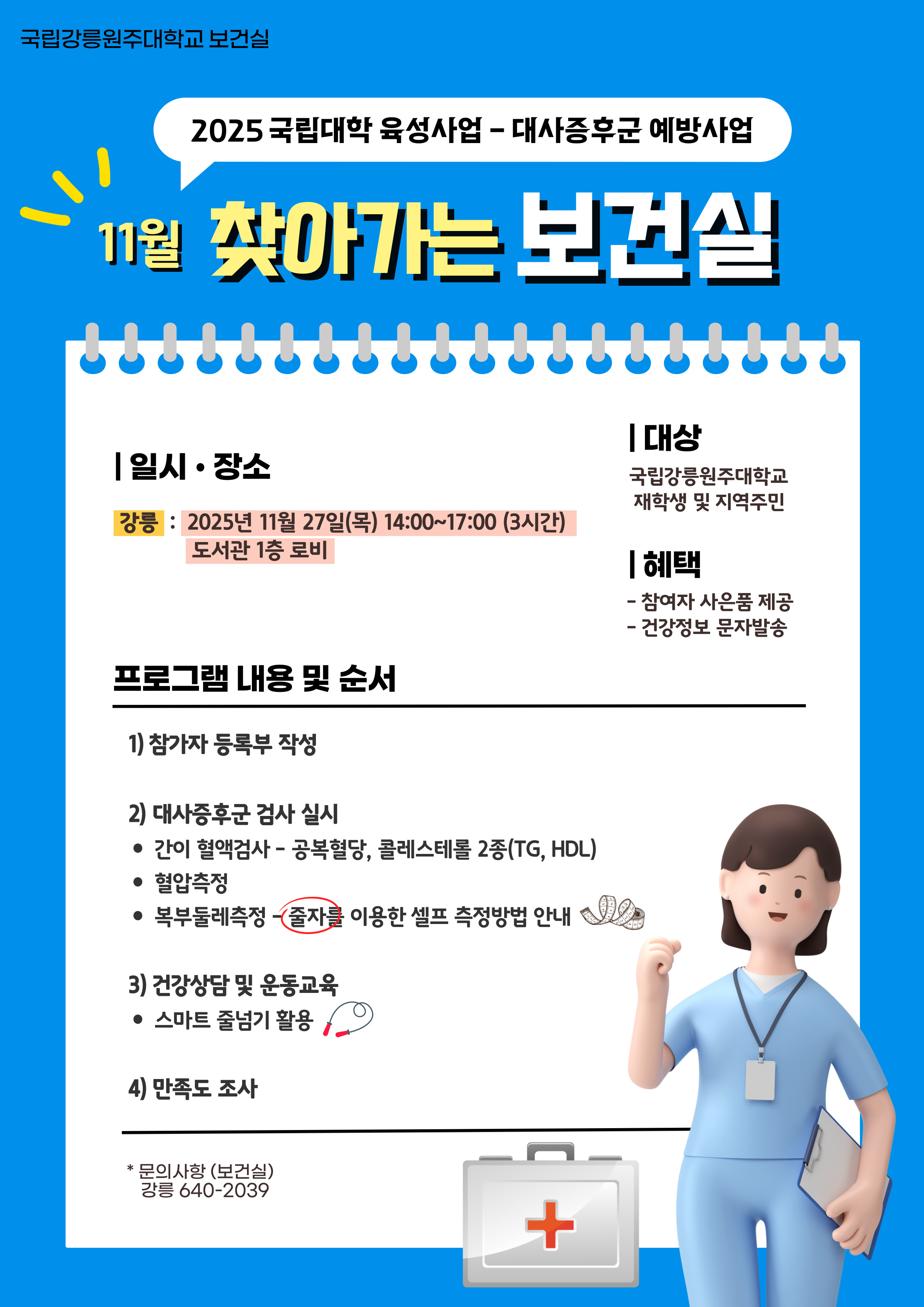 [강릉] [보건] 찾아가는 보건실 운영알림(2025.11.27.(목))
